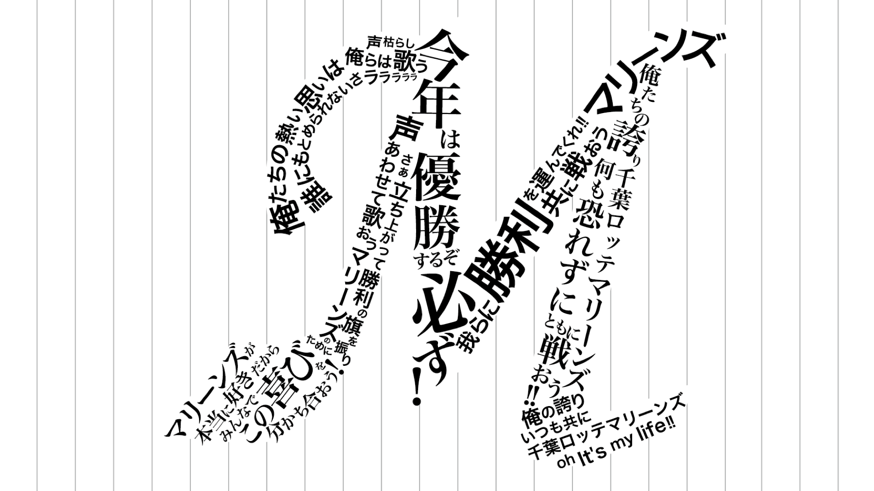球団のロゴマーク「M」を7つの応援歌の歌詞で描き、ファンの想いが伝わるようなデザインにしました。