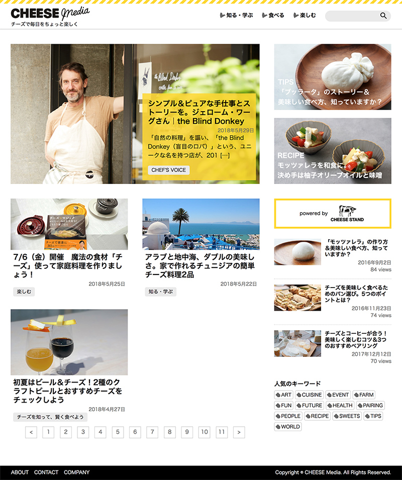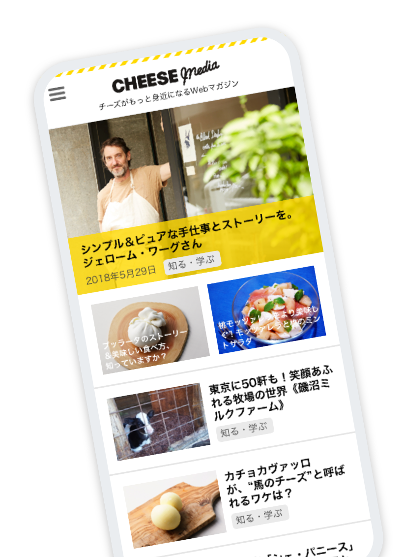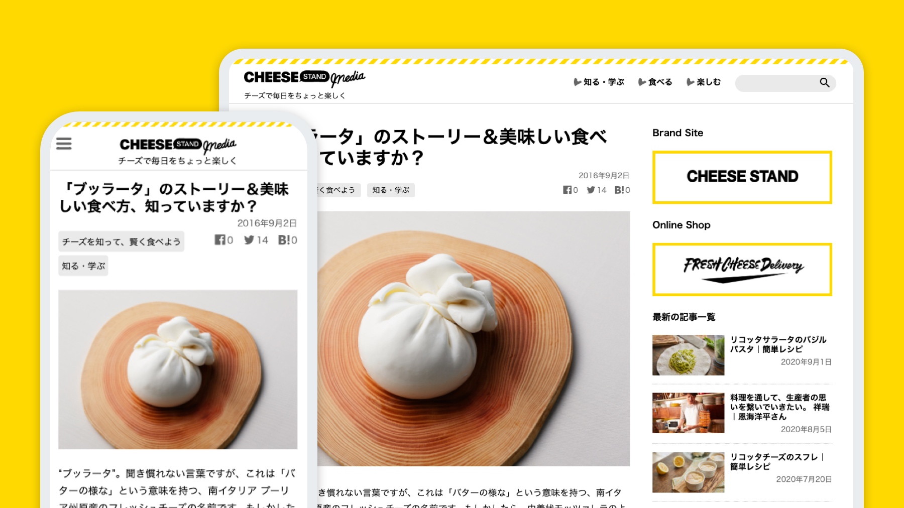 出来たてのフレッシュチーズが味わえる店・CHEESE STANDが手がけるオウンドメディアサイト「CHEESE Media」のUIデザイン・WordPress構築を担当しました。