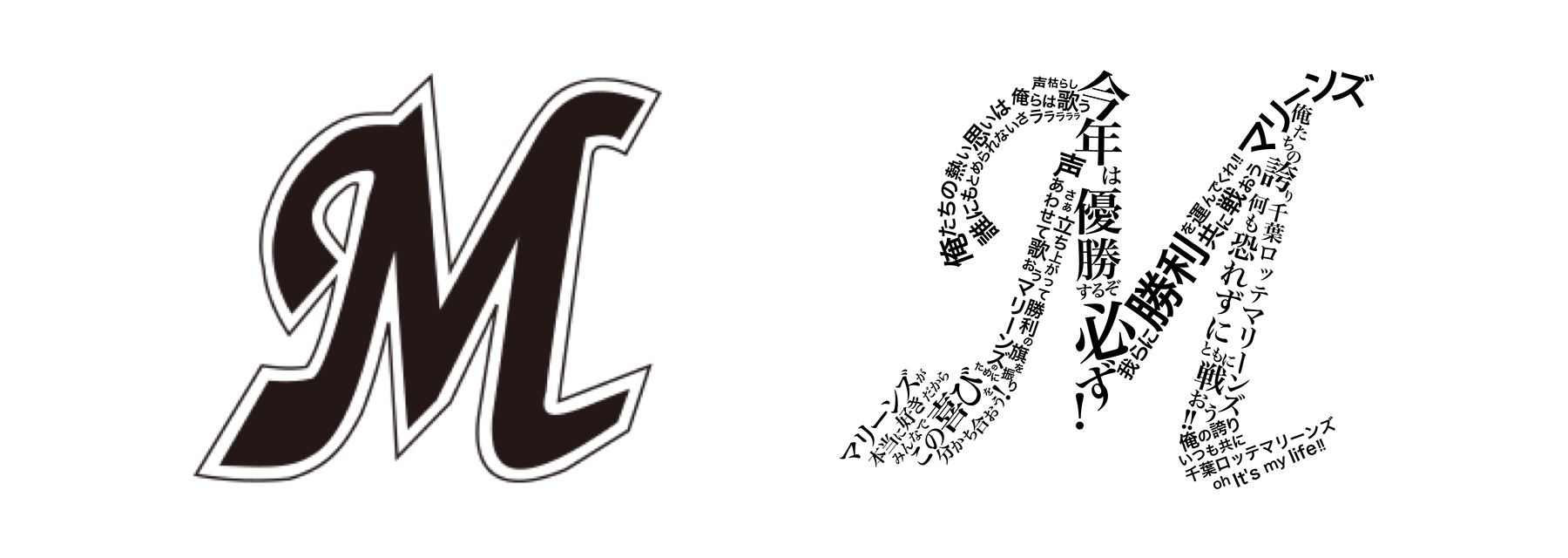 球団のロゴマーク「M」を7つの応援歌の歌詞で描き、ファンの想いが伝わるようなデザインにしました。