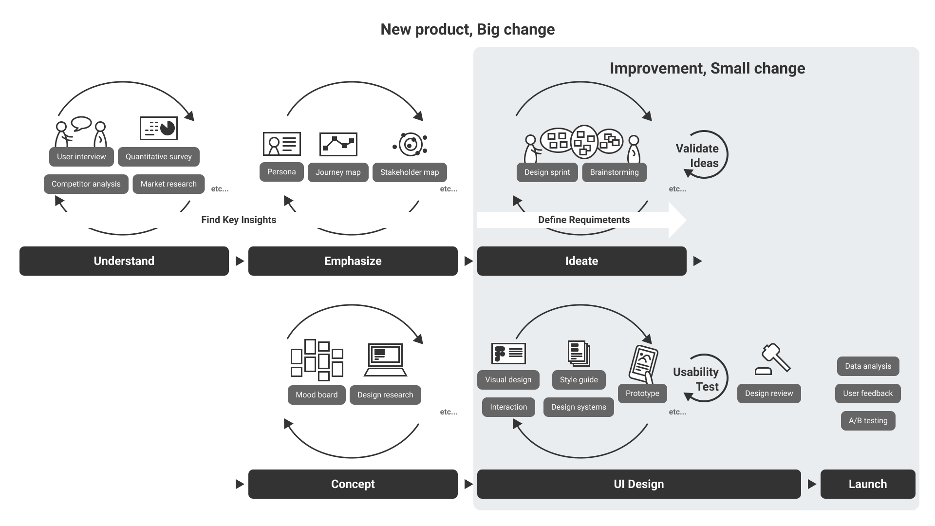 以前とあるプロジェクトにおいて、プロダクトマネージャーが定義したワイヤーフレームに沿ってデザイナーがデザインをしていくウォーターフロー型のフローになっていたことがありました。もちろんデザイナーとして意見を言うことも認めていましたが、結果としてうまくまわらず、正直デザイナーの不満がたまっていってしまいました。