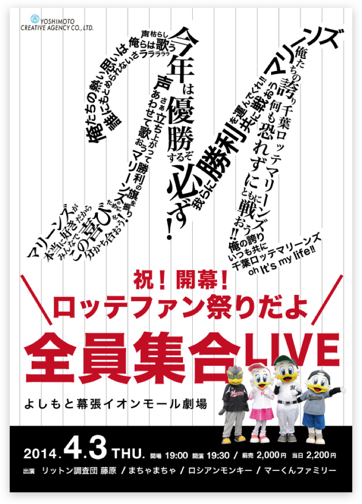 2014年4月に開催されたよしもとクリエイティブ・エージェンシー主催の千葉ロッテマリーンズファインイベント。ポスターデザインをクラウドソーシングで応募し、採用されました。